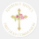 Sticker Rond Première communion Gold Cross Rose rose Monogramme