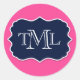 Sticker Rond Preppy Trois Monogrammes Et Cadre Initiaux