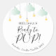 Un autocollant rond classique prêt à scintiller POP baby shower avec de mignons nuages vert menthe et des étoiles d'or sur des cordes, sur un arrière - plan blanc. Ces autocollants de douche pour baby shower, arrosage ou couples sans sexe sont parfaits pour sceller les enveloppes et les faveurs. Personnalisez avec vos détails spéciaux. Conçu par Thisisnotme©