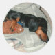 Notre doxie, Pretzel, en train de snober avec son ami (un chien farci de seins d'animaux)