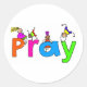 Belle illustration de dessins animés de jeunes garçons et filles heureux et divers escalade sur des lettres géantes de l'alphabet qui épelent le mot PRAY. Image disponible sur divers cadeaux et produits. Autocollants.