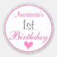 Fille et jolie parties scintillant rose et argent chaud scintille princesse 1er anniversaire classique collant rond. Vous pouvez facilement ajouter le nom de votre choix et modifier la couleur et la police en utilisant l'option personnaliser !