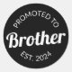 Design cool, parfait pour tout nouveau frère. Une façon géniale d'annoncer une grossesse à votre fils ou gendre! 'Promu à frère est 2024' une citation amusante pour un garçon qui aime déjà son frère ou sa soeur. Donnez ceci à votre fils pour son anniversaire ou achetez cet art si vous êtes le meilleur nouveau frère sur Terre ! Un grand cadeau pour les frères aimés, un garçon promu au grand frère, et un fils génial qui devient frère.
