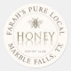 Étiquette simple au miel d'ivoire avec abeille héraldique vintage. Le mot HONEY est écrit et réfléchi dans une police métallique ciselée. Le nom de l'abeille ou de l'apiculteur est écrit en texte courbe autour du périmètre supérieur du étiquette, avec la ville et l'état en texte courbe le long de la partie inférieure du étiquette. Poids net en onces sous le mot Miel.