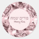 Sticker Rond Purim hébreu personnalisé rose moderne
