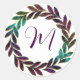 Sticker Rond Purple bleu vert Wreath Design Monogramme initial