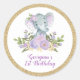 Sticker Rond Purple Elephant Lavande Or Merci Floral
