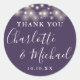 Violet mariage faveur merci classique collant rond avec de jolies lumières à cordes et des noms de style signature. Personnalisez avec vos détails de remerciement spéciaux dans la typographie blanche moderne. Conçu par Thisisnotme©