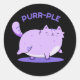 Sticker Rond Purr-ple Funny Gras Kitty Chat Pun Dark BG