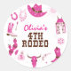 Sticker Rond Quatrième rodéo rose cowboy occidental 4e annivers