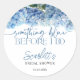 Un autocollant élégant pour une douche de mariage avec des hydrangeas bleus aquarelles luxuriants et des polices mixtes délicates indiquant « Quelque chose de bleu avant de faire ». Un design doux et romantique pour sceller les sacs de faveurs, les boîtes ou les enveloppes. Parfait pour une douche de mariage chic de jardin ou de vignoble. Le nom et la date modifiables facilitent l'adaptation à votre événement.