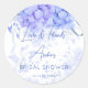 Quelque chose de bleu avant que je ne le fasse, modèle d'autocollants de remerciement personnalisés avec monogramme botanique d'hydrangea bleue pour douche de mariée, autocollants de faveur botaniques de fleurs bleues aquarelles pour une douche de mariée sur le thème du jardin.