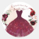 Sticker Rond Quinceanera Blush Bourgogne Aquarelle Fleurs