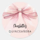 Un arrière - plan de couleur rose vif. Décoré d'un grand arc. Personnalisez et ajoutez un nom. Script de style manuscrit noir.