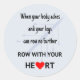 Vous avez atteint ce moment où vos jambes sont en agonie, votre corps crie "Stop !" mais votre cerveau dit "Non ! La course n'est pas encore terminée !" C'est le moment de creuser profondément et d'enfiler de votre coeur. Le texte inspirant est en noir avec un coeur rouge, et il y a un arrière - plan bleu pâle avec la silhouette d'un huit rameur.