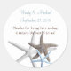 Rond, préférez les étiquettes à l'étoile de mer. Blanc avec bleu et marron design d'étoiles de mer et texte personnalisé. Ajoutez les noms de la mariée et du marié et la date du mariage.