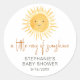 Prévoyez-vous un baby shower ? Cet autocollant sur le thème du soleil présente un joli soleil souriant jaune et "un petit rayon de soleil" dans la typographie stylisée. Facile à personnaliser. Aquarelle originale © Michele Davies.