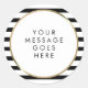 Avec un fond classique à rayures noires et blanches, ces autocollants élégants présentent une bordure élégante en faux or qui encadre votre message personnalisé spécial dans une typographie chic. Parfait pour les mariages, les enterrements de vie de jeune fille, les baby showers, les baptêmes, les fêtes de fiançailles, les célébrations d'anniversaire, les réunions d'anniversaire et tout autre événement spécial. Conçu par Thisisnotme©