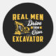 Sticker Rond Real Men Drive Excavator Construction Worker