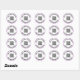 Une image d'affichage se trouve au milieu de l'autocollant. Vous pouvez le remplacer par votre code QR. Il existe deux lignes de texte d'affichage noir que vous pouvez modifier pour afficher un message personnalisé. Ces autocollants ont du texte noir dans un cercle blanc. L'autocollant a une bordure de lavande.