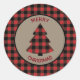 Sticker Rond Red Buffalo Plaid Bordure Arbre de Noël