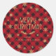 Sticker Rond Red Buffalo Plaid Gold Snowflake Joyeux Noël