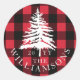 Sticker Rond Red Buffalo Plaid White Forest Pine Tree Famille