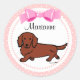 Caricature de chien unique et drôle créée par Naomi Ochiai du Japon. Belle et drôle Dachshund cadeaux de dessin animé pour les fans de Doxie! ! dessin animé Dachshund aux cheveux longs. Marche fièrement. Arc rose et motif pois. Vous pouvez customiser du texte et plus encore!