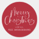 Red Modern Simple Calligraphie Joyeux Sticker Classic Round de Noël dispose d'une calligraphie moderne.