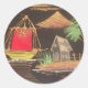 Sticker Rond Red Sailboat Paysage peinture à l'huile Imprimer