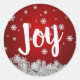 Joli stickers Noël de vacances avec des flocons de neige en blanc avec le mot JOY en gros caractères. La couleur Arrière - plan est rouge. Parfait pour les enveloppes, cartes, cadeaux, pâtisseries, ...