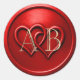 Sticker Rond Red Two Hearts Intertwined Monogram Wedding