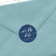 Autocollant "Save the Date" élégant avec les mots "Save the Date" dans un script cursif détendu en blanc sur un fond de couleur modifiable (cliquez sur personnaliser pour y accéder).