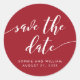 Autocollant "Save the Date" élégant avec les mots "Save the Date" dans un script cursif détendu en blanc sur un fond de couleur modifiable (cliquez sur personnaliser pour y accéder).