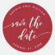 Autocollant "Save the Date" élégant avec les mots "Save the Date" dans un script cursif détendu en blanc sur une couleur de fond modifiable (cliquez sur Personnaliser pour y accéder).