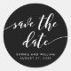 Autocollant "Save the Date" élégant présentant les mots "Save the Date" dans un script cursif détendu en blanc sur un fond de couleur modifiable (cliquez sur personnaliser pour y accéder).
