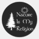 Le problème avec les religions traditionnelles est qu'un intermédiaire est nécessaire pour vous dire ce que vous vivez. Quand la nature est votre religion, il n'y a rien entre vous et la Terre Mère. Dessin en trait d'arbre et de soleil avec des mots "La nature est ma religion".