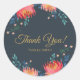 Sticker Rond Remerciements! Bleu foncé, Élégant, Fleurs Whimiqu