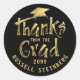 Autocollants de remerciement modernes pour la remise des diplômes ou sceaux d'enveloppe avec typographie manuscrite au pinceau en or sur la couleur de fond de votre choix (illustré en noir). Le texte indique MERCI DE LA PART DU DIPLÔMÉ, année de promotion et nom du diplômé. Modifiez la couleur de fond ou du texte dans MODIFIER pour coordonner avec les couleurs de l'école, du thème de la fête ou de la papeterie. Utilisez-les comme autocollants de remerciement pour la fête de remise de diplôme ou comme sceaux d'enveloppe lorsque vous envoyez des cartes de remerciement. ASSISTANCE : Pour obtenir de l'aide concernant la modification de la conception ou la personnalisation, le transfert du design sur un autre produit ou si vous souhaitez des articles coordonnés, contactez le concepteur AVANT DE COMMANDER via l'onglet MESSAGE de discussion Z