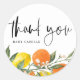 Ajoutez une touche fraîche et fruitée à vos remerciements pour la baby shower avec cet autocollant de remerciement personnalisable, présentant un design vibrant à l'aquarelle de citrons et d'oranges. Parfait pour sceller les enveloppes, décorer les sacs de faveur ou coller sur les cadeaux de remerciement, cet autocollant joyeux peut être personnalisé avec le nom de votre petit. Que vous organisiez une fête sur le thème tropical ou que vous aimiez simplement l'ambiance lumineuse et ensoleillée, cet autocollant de baby shower est un moyen amusant et mémorable de montrer votre appréciation à vos invités !