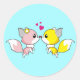 Sticker Rond Renard Couple Kissing avec Petit Coeur Overhead