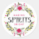 Un autocollant de fête amusant et festif avec une couronne de Noël rose et vert. Il fait partie d'une collection de vacances, "Making Spirits Bright Wreath". Des éléments correspondants et d'autres couleurs sont disponibles. Joyeuses fêtes !