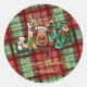 Sticker Rond Renne à dauphins rouges verts, Snowman