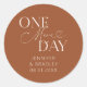 Dîner de répétition minimaliste mariage préférez l'autocollant avec le texte de typographie qui dit "un jour de plus". L'arrière - plan est en terre cuite.