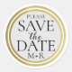 Faux design de bordure circulaire en or avec les mots "Veuillez enregistrer la date" et les initiales personnalisées... pour vos envois mariages.