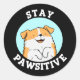 Sticker Rond Restez Pawsitive Funny souriant Chien Pun Dark BG