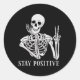 Sticker Rond Restez positif Jamais mieux Skeleton amusant Hallo