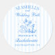 Sticker Rond Retro Bleu Coquillages & Cloches de Mariage Enterr