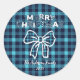 Sticker Rond Retro Blue Plaid Whimsical Christmas