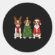 Sticker Rond Retro Christmas Brittany Spaniel Santa Reindeer Do